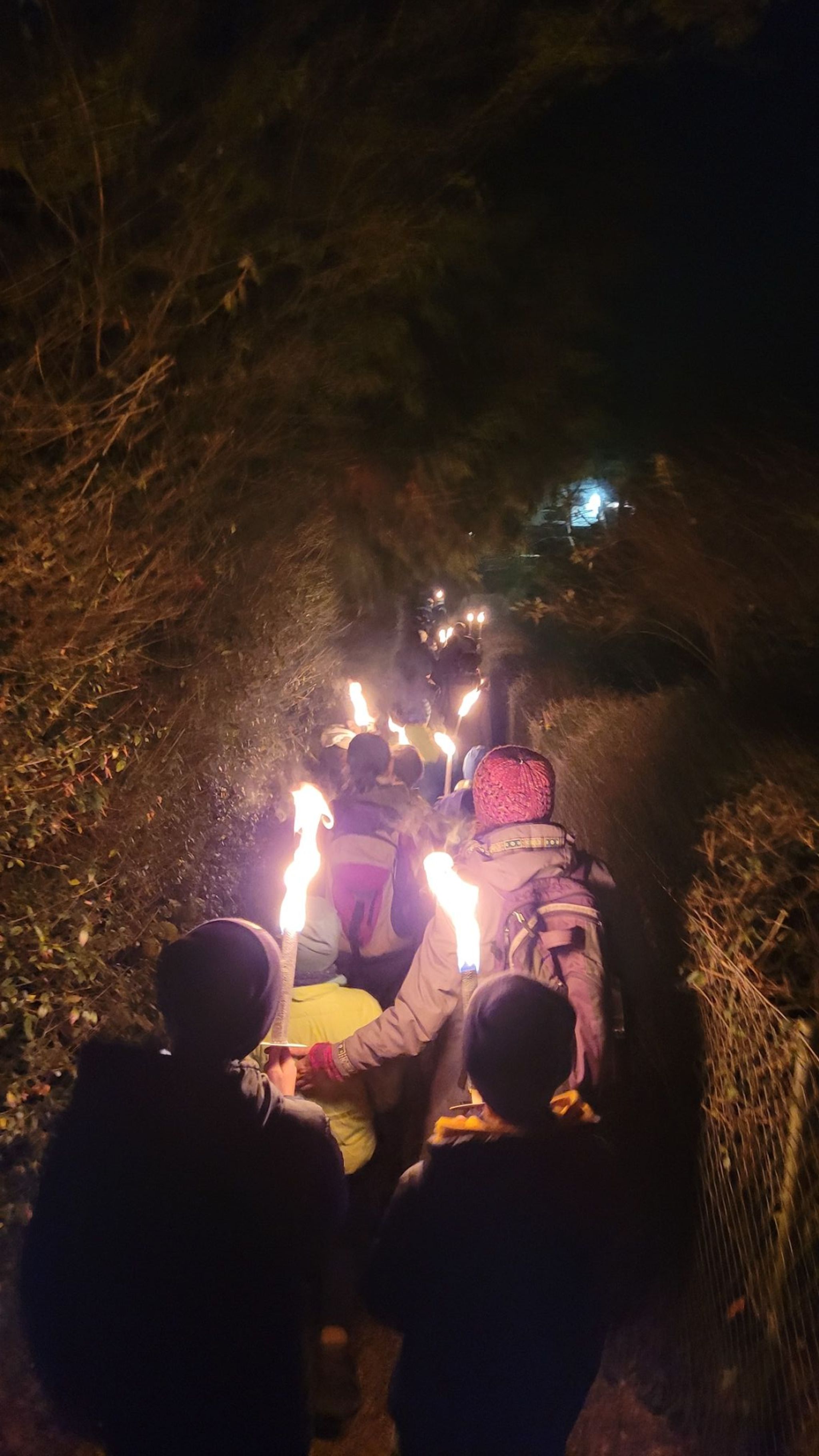 Nach zwei Jahren ohne Adventsfeier war es am Donnerstag, den 8.12.22, endlich wieder so weit. Los ging es in der Schondorfer Heilig-Kreuz-Kirche mit einer stimmungsvollen Andacht unter Mitwirkung einiger Schüler sowie musikalischer Begleitung der schulischen Bläsergruppe. Von der Kirche aus macht sich Schüler, Eltern und Lehrkräfte mit Fackeln ausgestattet auf den Weg zum Schulgelände. Empfangen wurden die weiteren Teilnehmenden mit einer Einlage der Bläsergruppe auf dem Balkon – diesmal unterstützt von Pfarrer Wnendt an der Posaune! Anschließend eröffnete Herr Morhard die Adventsfeier offiziell mit einer kurzen Ansprache.