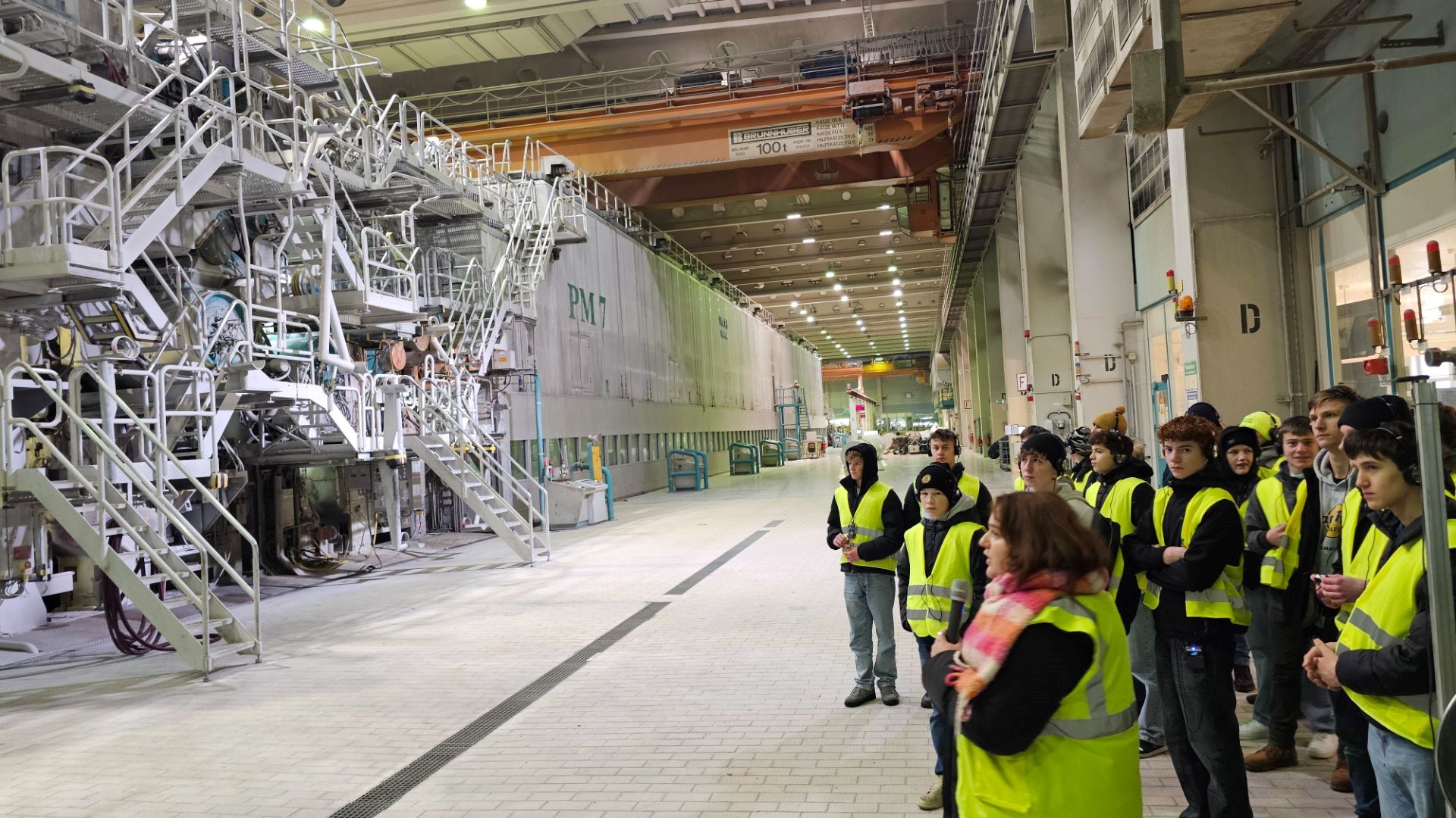 Am 9.1.2024 fuhr die 9d mit der BRB nach Schongau. Dort besuchen sie die UPM Papierfabrik. Auf der 90-minütigen Tour sahen und erfuhren die Schüler eine ganze Menge. Neben der Langsiebmaschine, die auch aus dem isb-Werkenarbeitsheft bekannt ist, kommt die Gruppe auch bei dem Kontrollraum, dem hausinternen Elektrizitätswerk und der Kläranlage von UPM, sowie der De-Inking-Maschine vorbei.